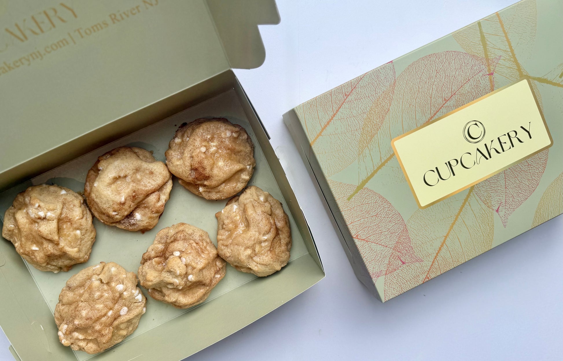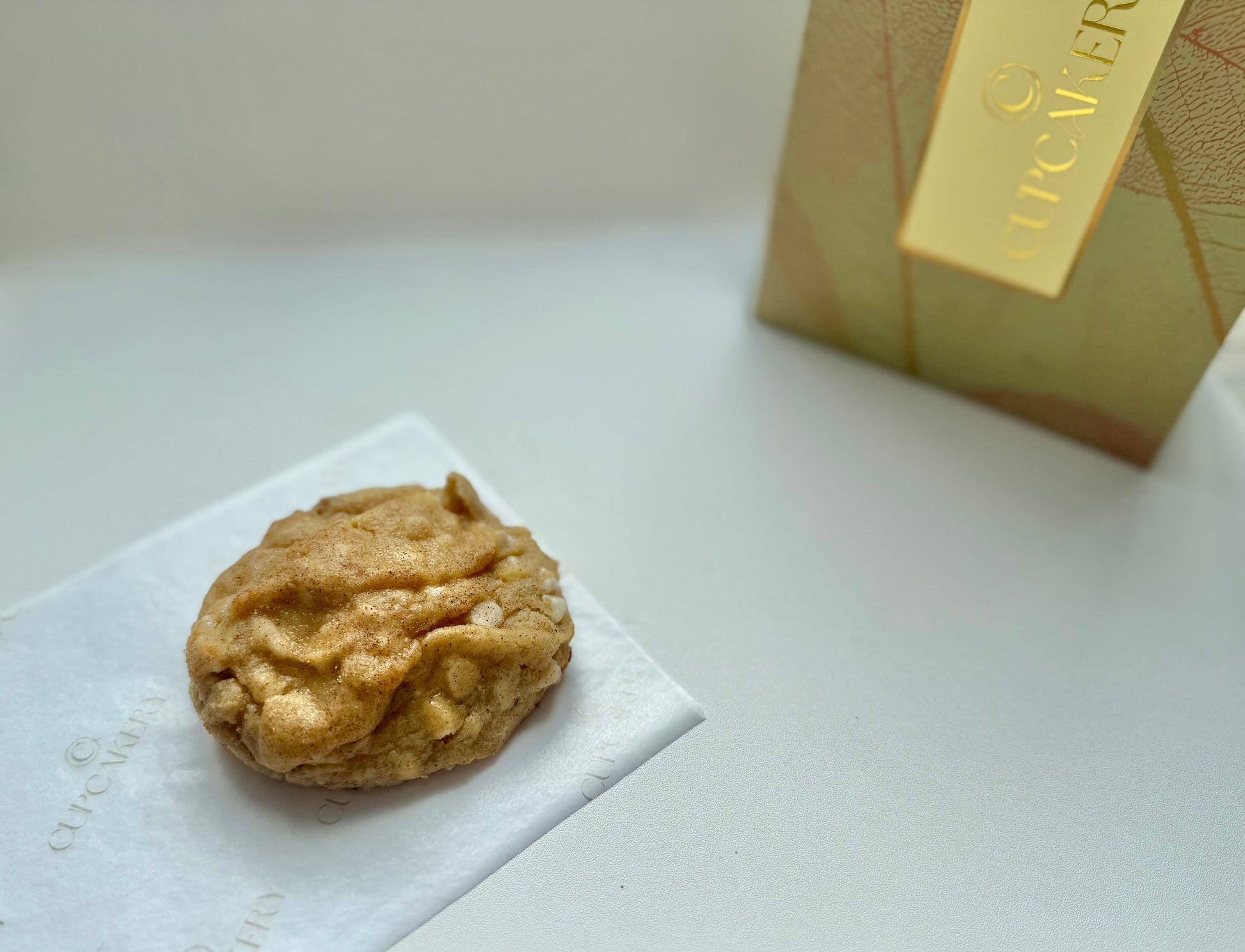 A cozy swirl of cinnamon and sugar baked into a soft, irresistible cookie melting with white chocolate and sprinkles cinnamon sugar