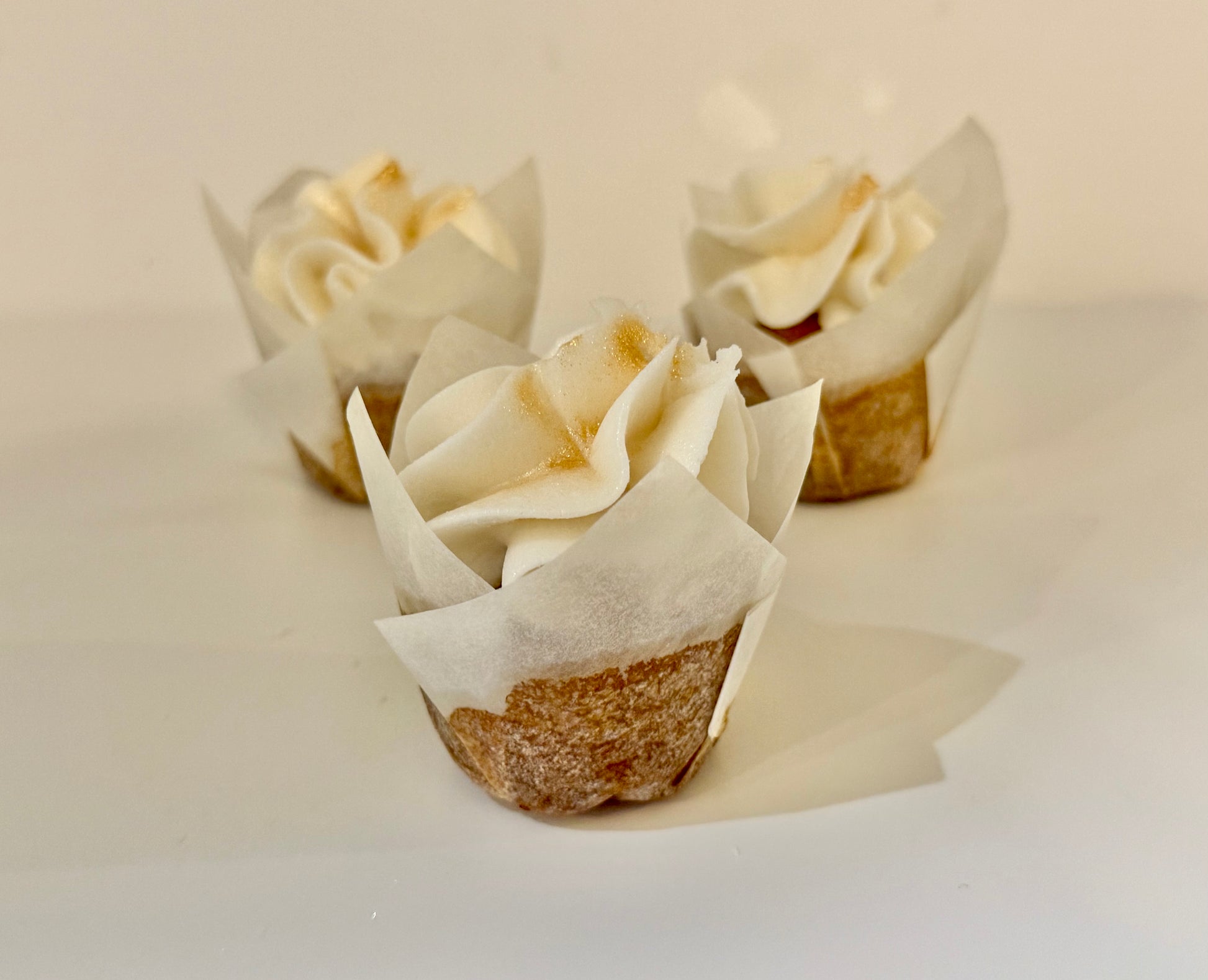 Savor the rich, earthy flavors of our carrot muffins, perfectly spiced and topped with decadent parve cream frosting and gold shimmer. Ideal for gifting or pure enjoyment!